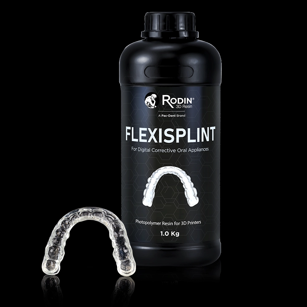 Rodin Flexisplint by Pac-Dent is a premium 3D printing resin designed to maximize patient compliance through superior flexibility. While the Rodin Splint line provides a hard, rigid surface, Flexisplint offers a resilient, semi-flexible alternative that absorbs occlusal forces while remaining gentle on the teeth and gums.